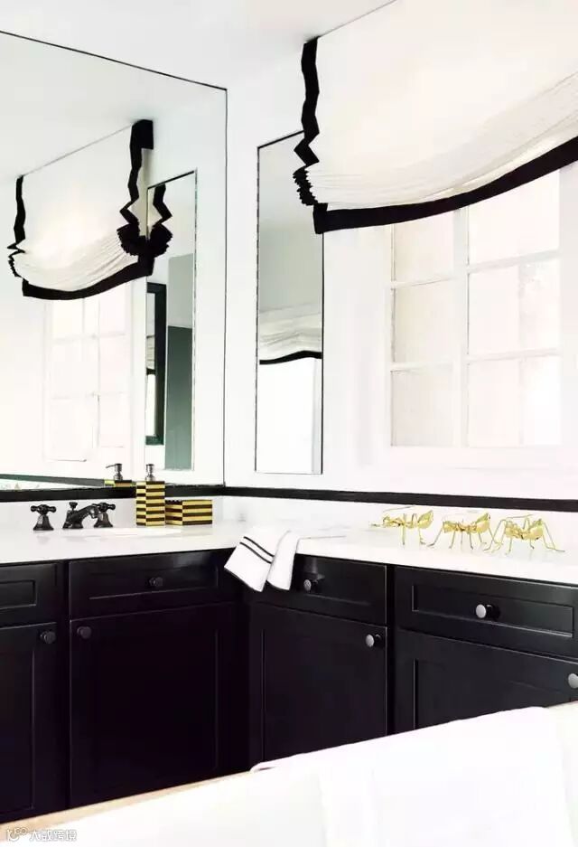 ▲女星Jessica Alba的浴室,同样运用了黑+白+金,小面积的金色装饰是营造优雅空间的关键。