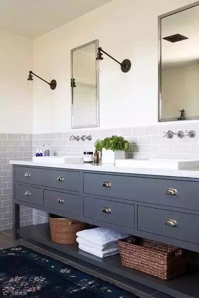 ▲《sex and city》女主角Sarah Jessica Parker的浴室,蓝色调小画、灰蓝色收纳柜、深蓝色的浴帘、蓝色系洗漱用具,整个浴室蓝白搭配,清爽明快。