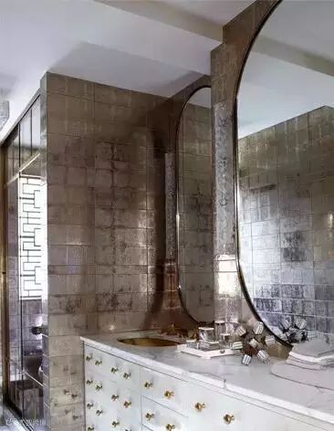 ▲女星Cameron Diaz的浴室,整面墙运用了暗金色进行装饰,低饱和度带来高级的奢华感。