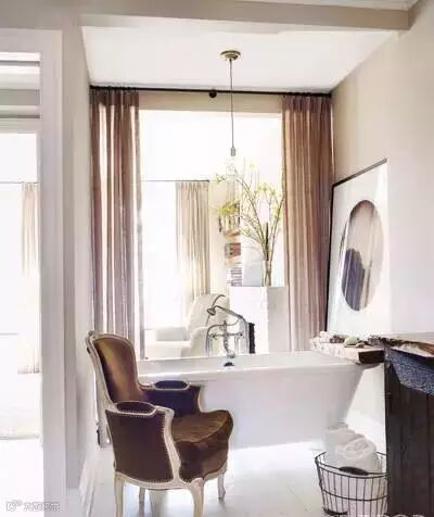 ▲《猩球崛起》女演员Keri Russell把休闲椅摆在浴缸旁边,或为方便换衣,或为自己设置一个私密的放松空间。浴室,真的不仅仅是泡澡搓泥儿的地方!