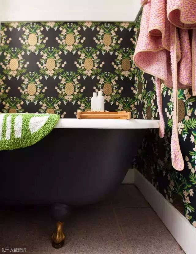 ▲Hygge&West壁纸公司创始人Christiana Coop的浴室,防水壁纸的技术目前已经相当成熟,我们不妨考虑像Christiana一样在浴缸旁边用壁纸营造出颇具情调的沐浴氛围。