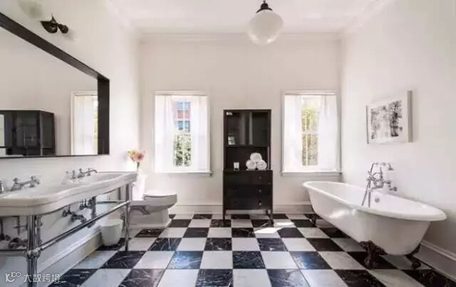 ▲女演员Michelle Williams的浴室,地砖、镜框和装饰画,黑白单品搭配得十分和谐。