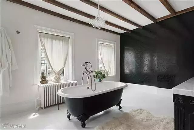 ▲Cold Play酷玩乐队吉他手Jonny Buckland的浴室,黑色独立浴缸是我们值得借鉴的单品。