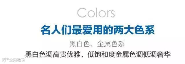 色彩是家居装饰风格中的主线,名人们最爱用黑白和金属色打造高贵优雅的家居空间。黑白色调用小面积金色点缀彰显优雅,金属色调在大面积装饰时降低饱和度即可营造低调奢华的气质。