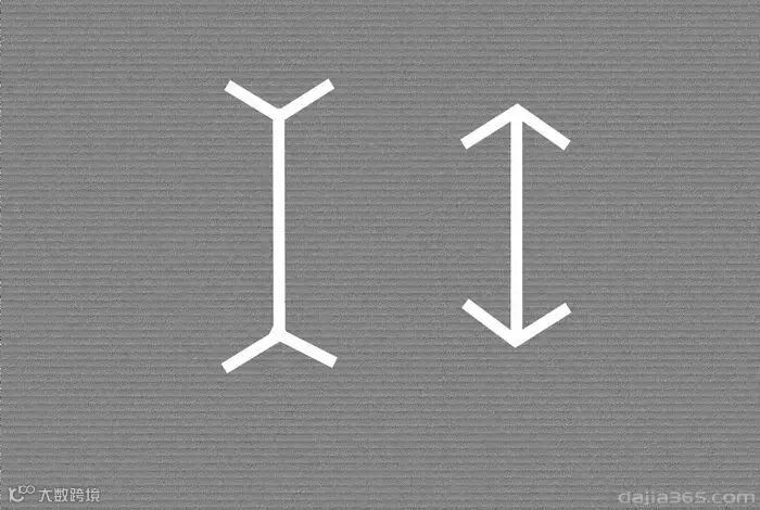 这两条竖线你们在感觉上哪条竖线会更长?是不是左侧让人感觉上更长一些。其实是这两条竖线是一样长的,只不过因为两端的视觉延展性给人不同的错觉。