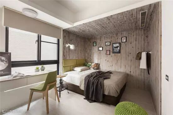 儿童房里的墙面以原木打造,古朴原野的纹理总是让人误以为住在森林小屋里呢,除了睡眠功能之外,还安置了简约的书桌,满足在卧室内的读书功能。