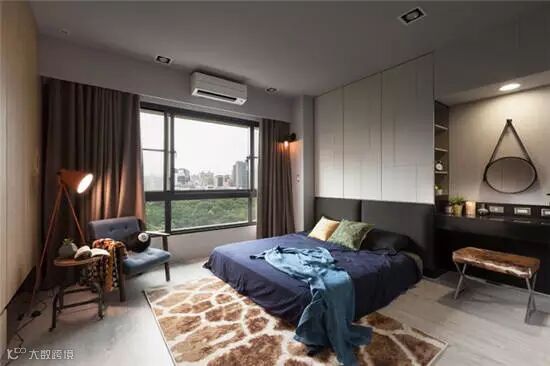 在工业风中不乏独自的专属创意,墙角的开放式角落里设计出工作区,蓝色墙面给人视觉上的隔断感。
