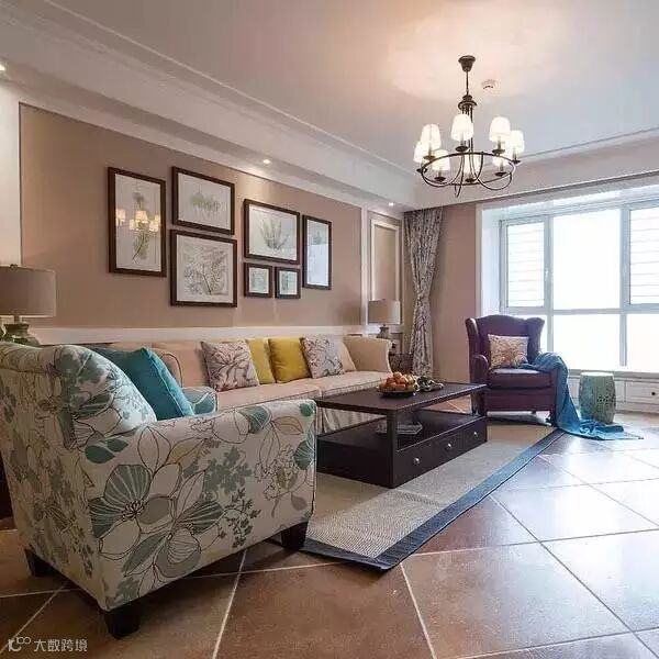 客厅,美式家具的搭配,搭配花艺和真皮边椅,点缀明亮的黄色系,效果棒棒的。