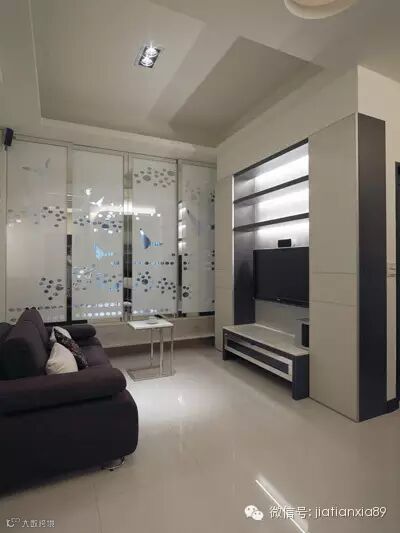 家天下实业一进门的玄关,右边墙面上半部是通透的隔帘,下半部是玻璃,均有延伸视觉的功能,也让玄关区明亮通透。玻璃上的藤蔓及飞鸟图案,带来柔软的语汇,也符合屋主喜好的自然元素,让人一进屋内,便有放鬆的心情。