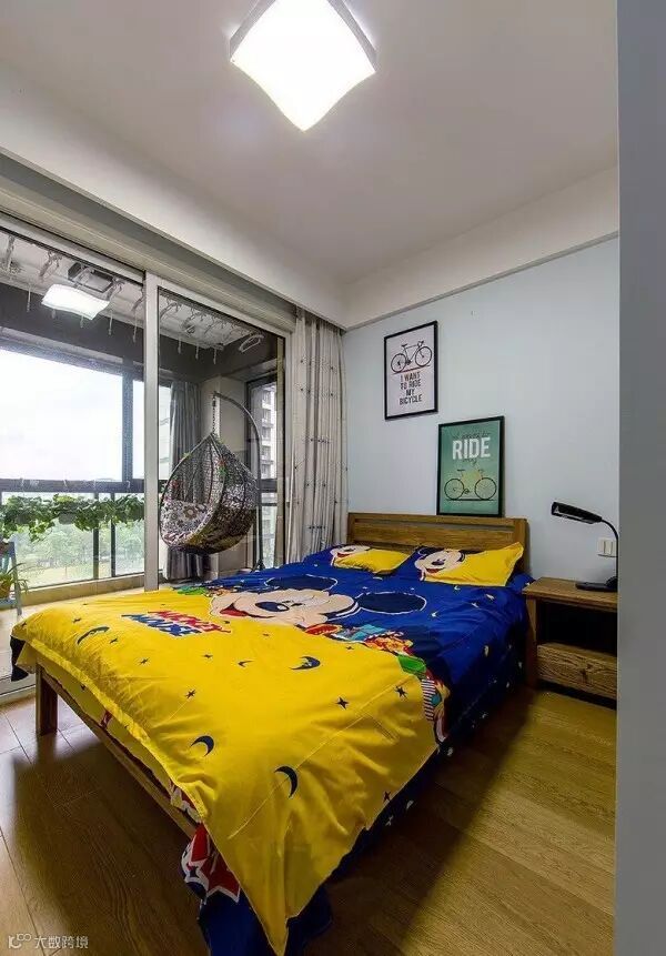 儿童房~天下父母对孩子的爱都是一样的,采光、视线最好的一间主卧,留给了孩子。大阳台,装上了小家伙最爱的秋千椅,因为房子入住不久,花草还不多,女主人说以后要把这里变成空中小花园。