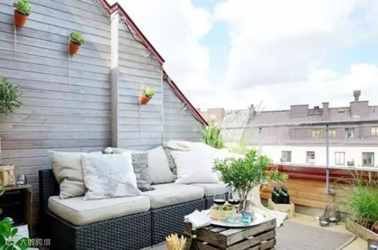 很自然的将房体的墙面当成阳台的一面墙,其上可以随意的放上吊兰或者装饰物,而足够大的空间也能够放上自己喜爱的沙发或者小茶几之类的家具。绿植是阳台最重要的部分,所以种类、数量之类的都要用心去装扮。