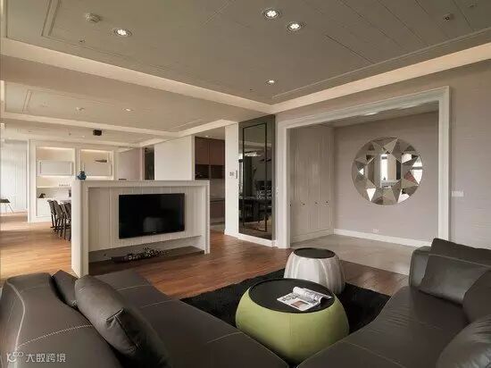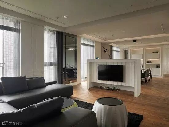 为了满足客厅采光面的延续,利用电视主墙做为隔断,划分出主卧房与客厅。