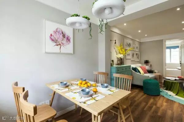 再来一张餐厅全景图,墙上的紫色挂画,和整体的浅淡色系很相配,视线落上去,心情也会柔和起来~