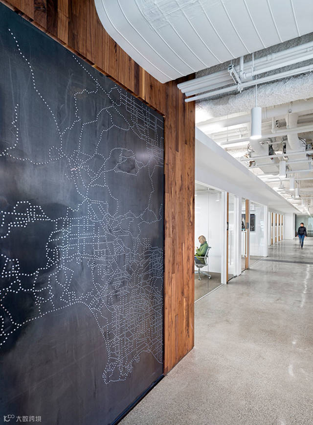 业务遍布世界118个城市的辉煌成就蚀刻在艺术装置上;会议室也以各地城市来命名;记载着Uber应用的世界地图以多种形式装点着室内空间。而这正是O+A设计团队的创意呈现,他们以此来激励这个新创的网络公司,他们的快速成长、他们的活力创新、他们的思维正改变这个世界,虽然他们现在正饱受争议,然而对于未来的交通争霸战不可避免的继续上演。