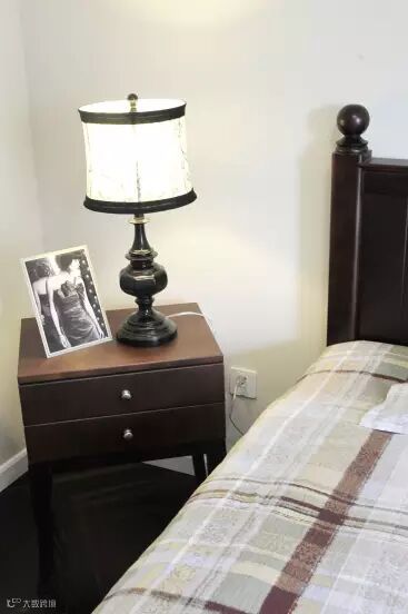 在卧室的设计中,床、梳妆台、灯、饰品都选用了带一点经典的木质风格,让整个卧室看起来简洁、典雅、大方。
