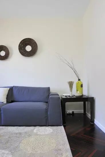 设计师不仅考虑到客厅空间有限,而且还考虑到空间的实用性与美观性,将茶几省去,用一个木制小桌子代替,这样不仅使活动空间更大,而且让整个客厅显得更加清新活跃。