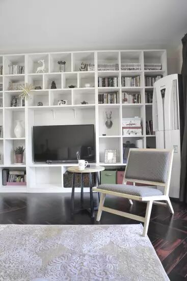电视墙不得不说设计的别具一格,设计师为了让空间能够更加整洁,下足了功夫,一面墙的收纳盒还怕不够吗?想怎么收纳就怎么收纳。