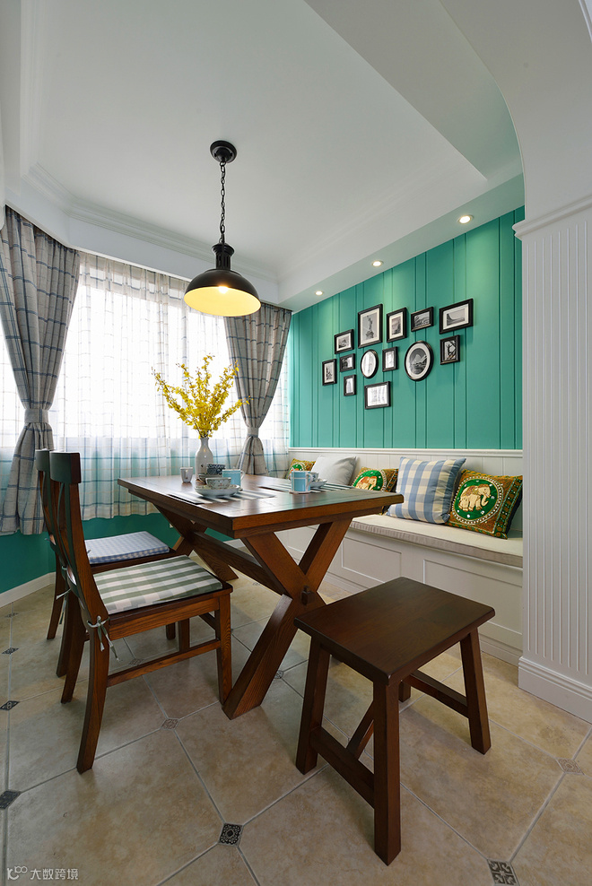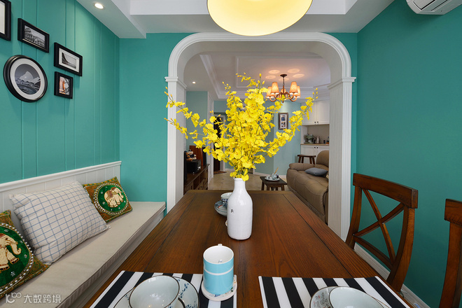 溪水绿的浪漫,绿浪侵袭的白色空间,更加的清新脱俗。简约的搭配,没有过多的修饰,简洁的精巧的装饰使空间温婉浪漫。