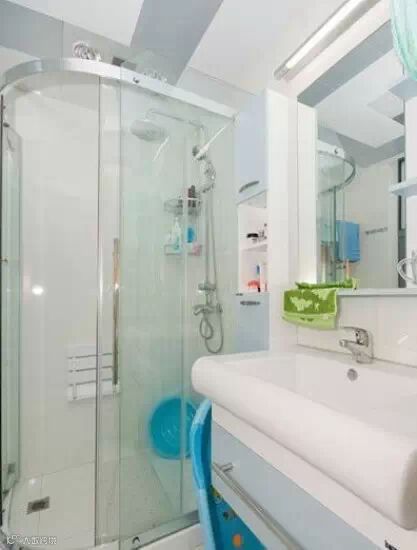 洗漱台富有现代感,简约实用。像这样不大的卫生间,合理分配下同样使用方便。