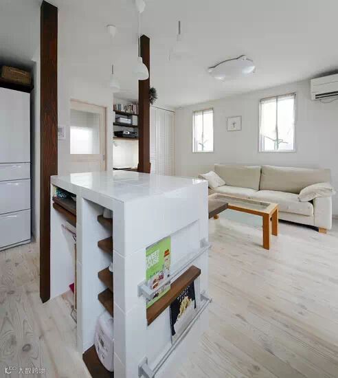 浅灰色的布艺沙发,宽敞整洁的样式,使生活更加简洁。白色瓷砖打造的碗柜,不仅可以存放餐具,还可以摆放几本杂志。木板分层的设计,增加了空间的收纳性,几本杂志,金属把手遮挡住杂志,防止杂志掉下来。简单的样式,使厨房更加整洁,而且给生活增添了乐趣。
