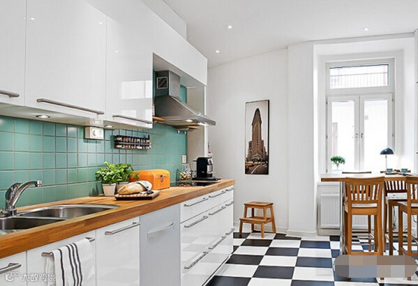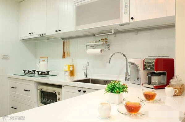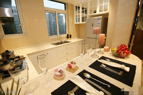 一般而言,厨房应以白色等中性色为主,然后局部搭配其他颜色。乳白色的厨房看上去清洁典雅,但不要选择带有绿色元素的黄色,既不方便打理,视觉效果也欠佳。