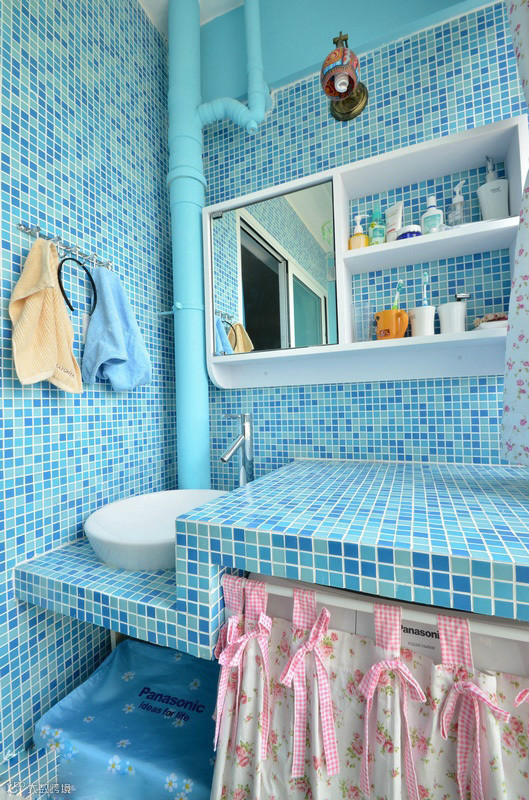 卫生间,这个蓝色的小瓷砖我好喜欢,有股地中海的感觉,很清新。