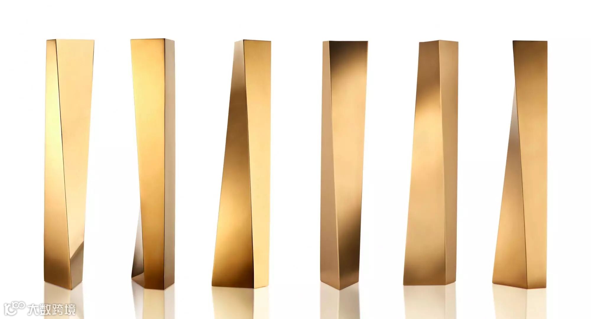 Celeste 花瓶沿着对角线稍微扭动了一下,使原来非常沉稳的方块一下子有了动感,正适合放在方方正正的房间里增添活力,同时花瓶使用了金属材质,沉稳而时尚。