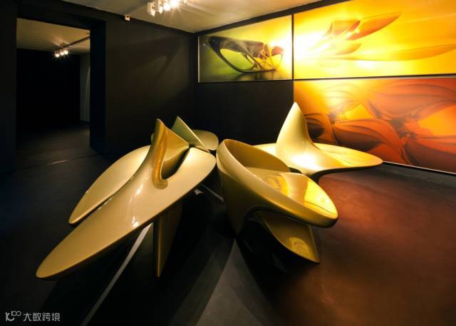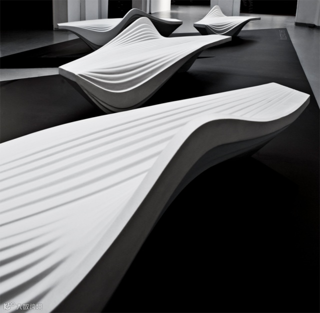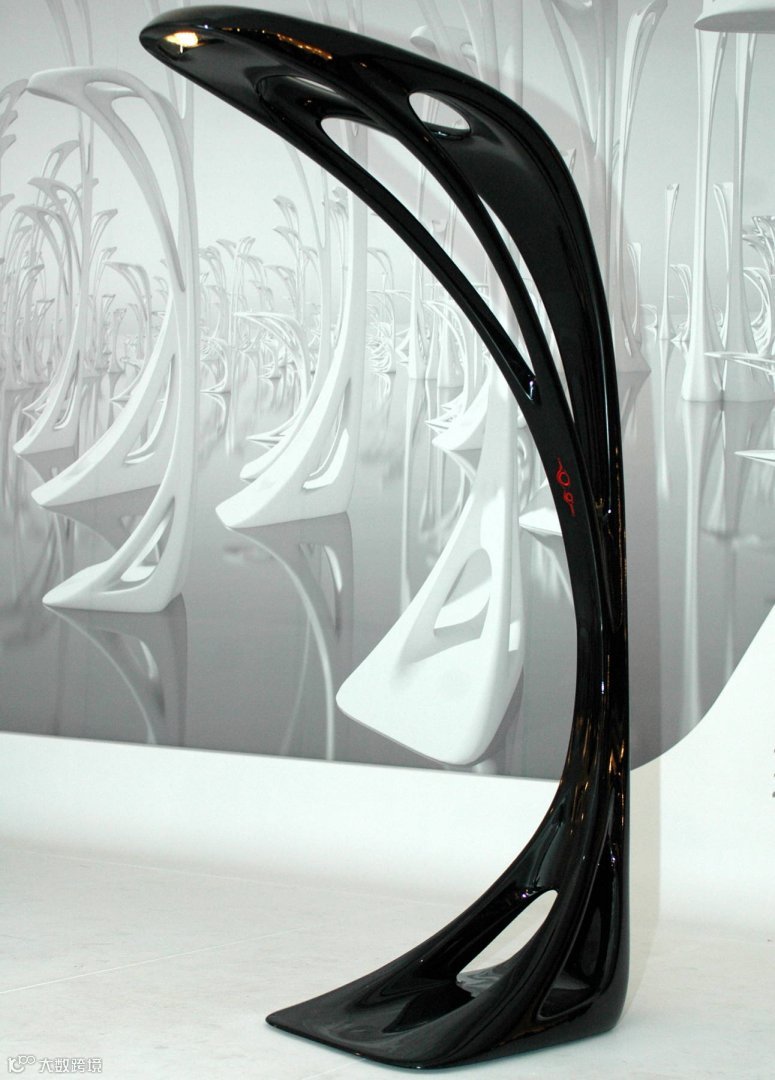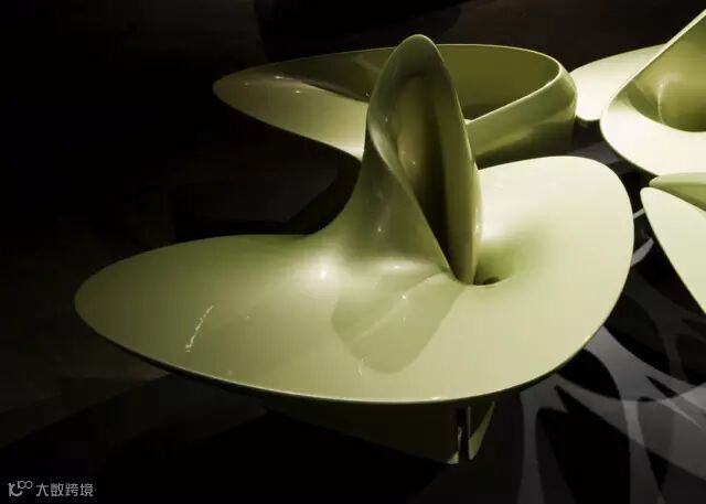扎哈试图用非明确的表面转换来表达家具的可变性,兰花椅的椅子腿和表面和靠背形成一个整体,相互转换,诠释了曲面的美感。