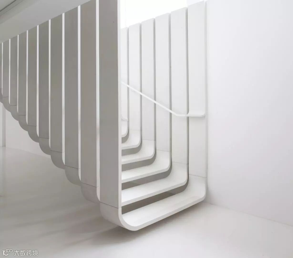 轻盈的漂浮楼梯使整个展览馆变得非常通透,每一个悬挂的台阶都以优雅的曲线围抱着中间,台阶之间的裂缝透出美丽的光,洁白的材质更增添了神圣感。