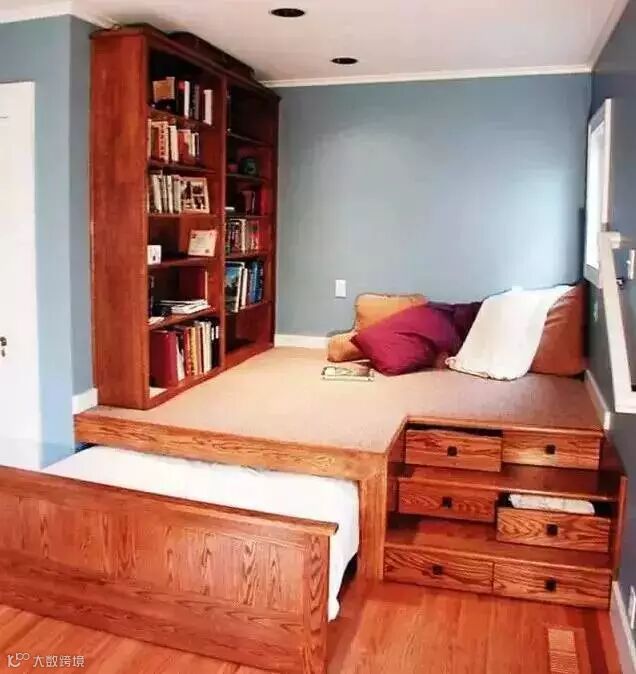 毕竟一个书房除了书架和书桌板凳,就没什么东西了,这样显得空旷。如果加上一个榻榻米的话就好办了,既可以收纳,又可以休息。