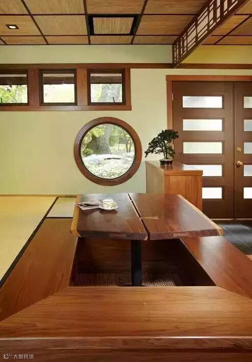 朋友到来总需要一个地儿聚在一起,中国改良版的榻榻米中间有个升降桌,围着升降桌坐的时侯,根本不需要盘腿,腿是可以放下去的,跟平时坐凳子差不多。