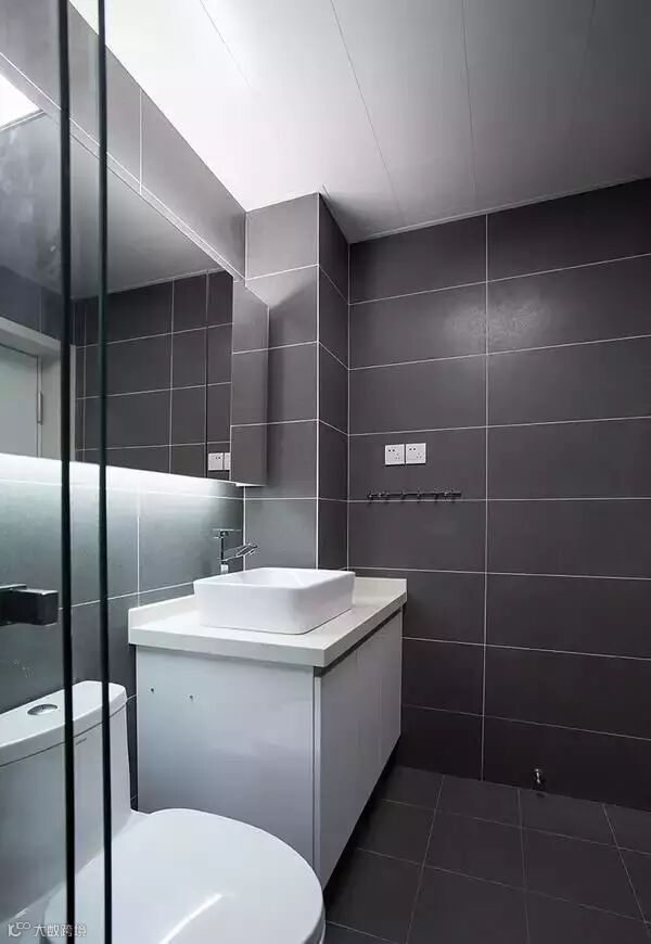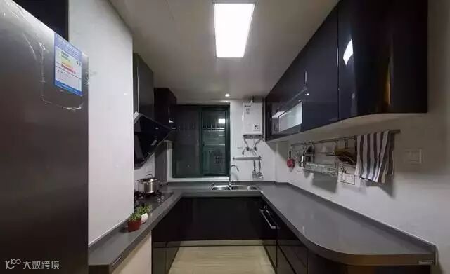 ▲ 橱柜采用了非常罕见的黑色门板,配合白色墙砖也是黑白分明