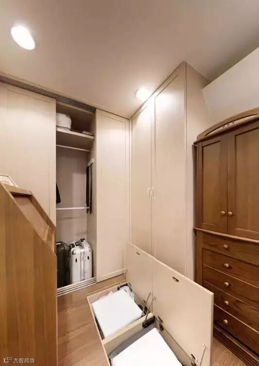 ▲ 床侧面是衣帽间区,利用三面以及地面尽量扩大收纳空间