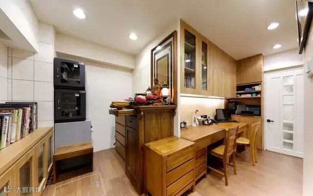 ▲ 利用过道空间做成书房区,圆弧的立面让过道显得更蜿蜒