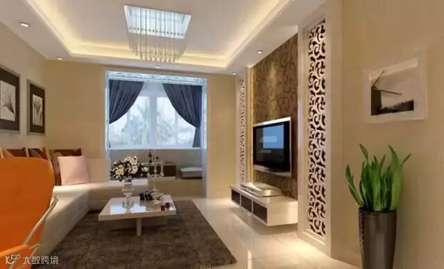 米色墙面营造整体温馨舒适的感觉,电脑区的设计增加实用功能,镂空隔断设计及吊顶空间的分割,合理划分了空间,周末窝在这样的客厅,一家人吃些水果、看看电视,生活有滋有味。