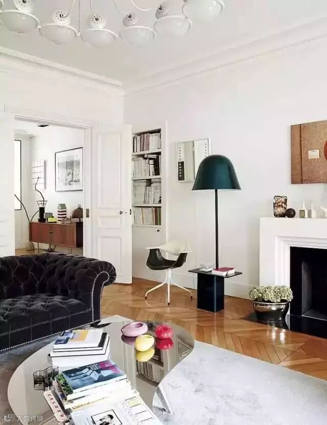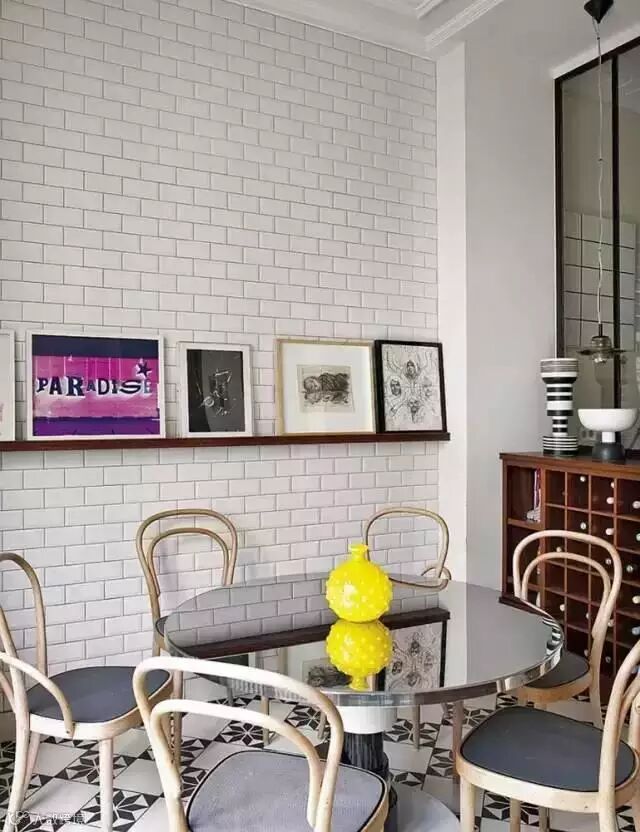 壁炉和它旁边的落地灯以及符合人体工程学的座椅,角落这样的设计,展现出一个优雅的阅读区域,明智的利用有限的空间。墙面的装饰体现了家中鲜明的个性,为普通的白墙变成了辉煌的背景墙做了举足轻重的作用。
