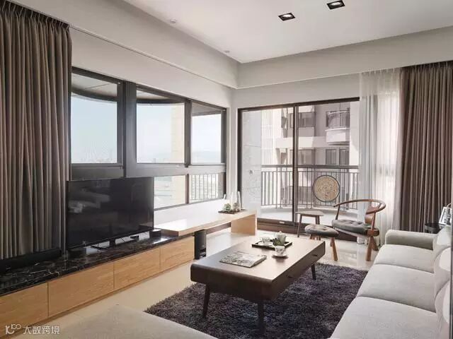 客厅和阳台是用玻璃推拉门隔开的,这样增加了空间感上的通透和客厅的采光也非常好。