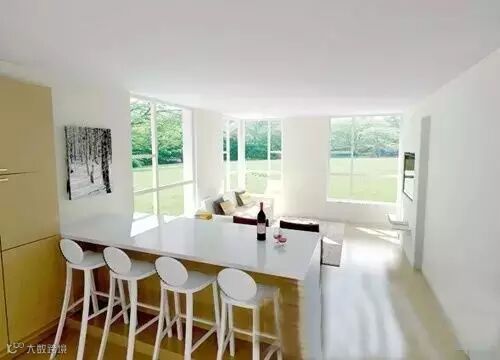 客厅相对较大,可以采用电视墙柜作为隔断,它不能太高,那样阻挡视线。电视采用可升降的滑轨,不用的时候可以收起来,不会使空间显得凌乱和拥堵。柜子的两边可以按照需要来划分,一边是沙发休闲区,另一边可以做开放式书房、游戏区,或者品茶的区域,总之,一款矮柜使空间规划有了更多的选择。