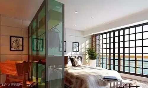 既想照顾小宝宝,又想拥有相对独立的卧室空间,这款透明的衣柜是很好的主意。它既充当了隔断的角色,又不会完全隔断人的视线,里面衣物的多少和摆放方式决定了它的通透程度。