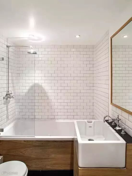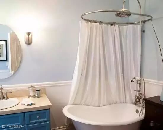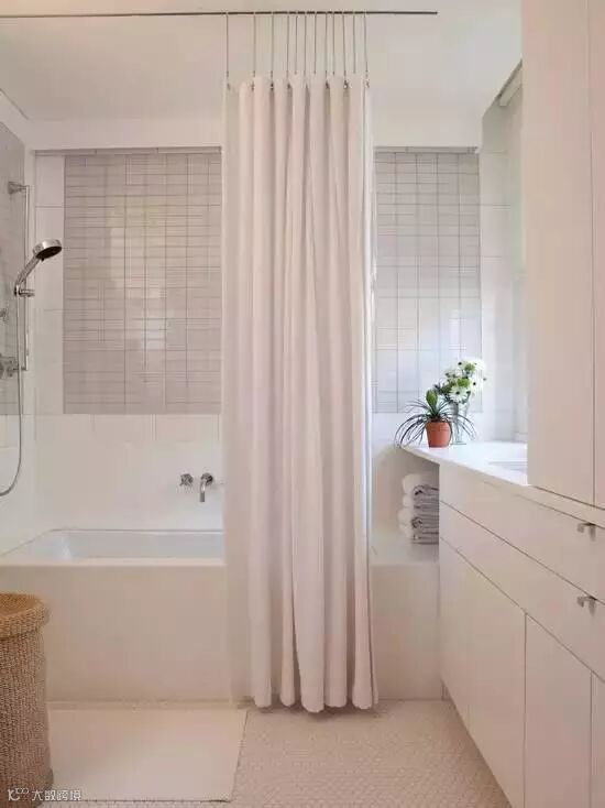 小小的浴缸,用一个围绕式的浴帘即可。