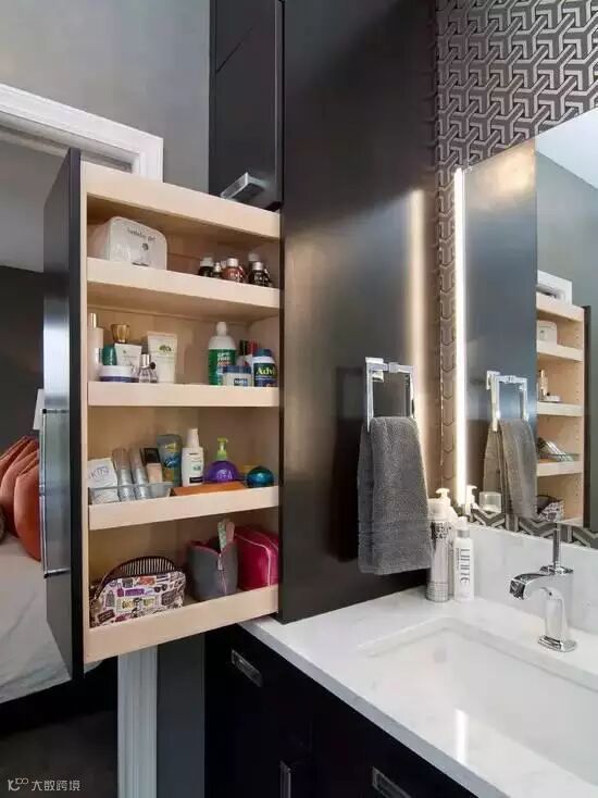 嵌入式的墙面多功能收纳柜,节省空间又很实用