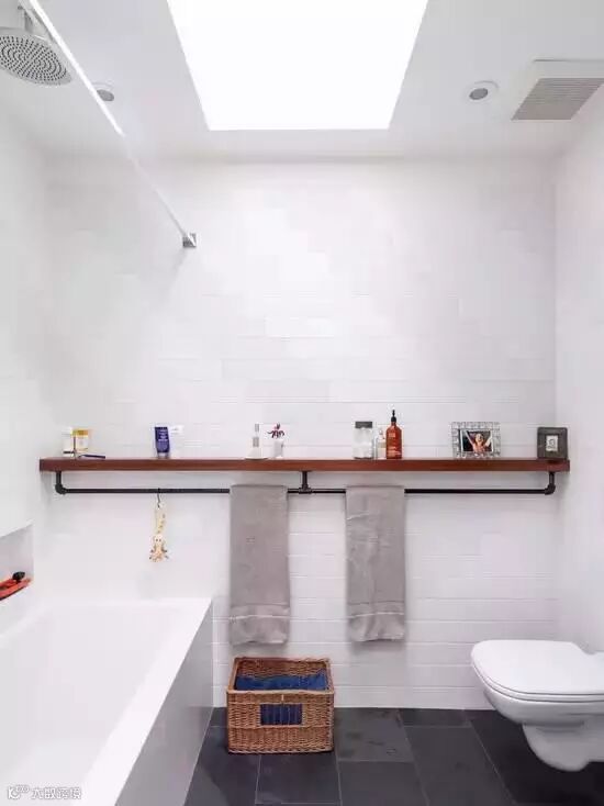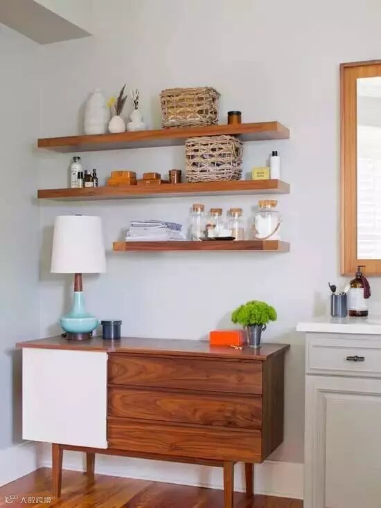 将边柜摆在卫生间,墙面再上隔板