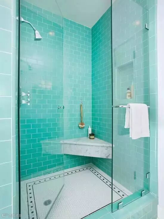 薄荷绿的淋浴房,颜色实在太美了