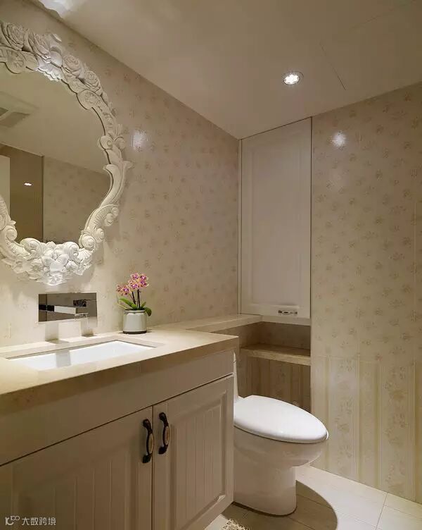 ▲卫生间2,浪漫清新,墙角收纳设计很用心