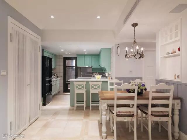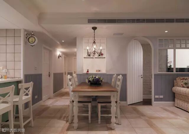 ▲欧式吊灯、地中海餐座椅、复古挂钟,营造清新复古浪漫
