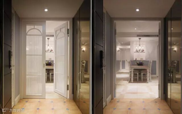 ▲玄关,推开衬白纱白色造型门,圆拱门、白格窗、复古挂钟与缤纷的色彩配置,彷彿翻开浪漫的南欧童话绘本。