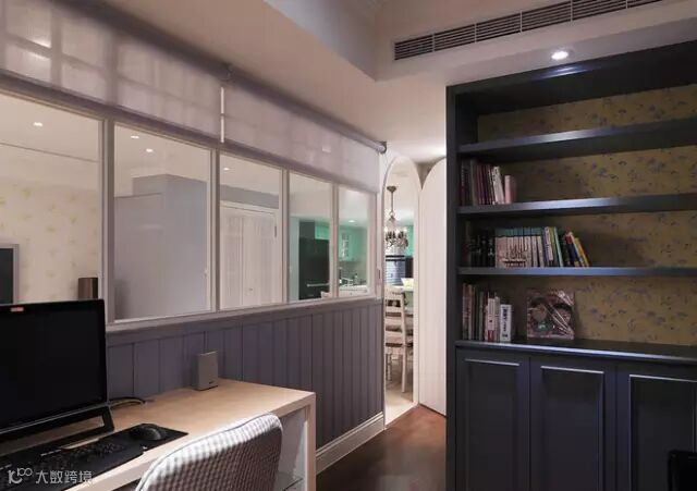 ▲沙发后面是隔出来的书房,选用透明窗让视野更开阔