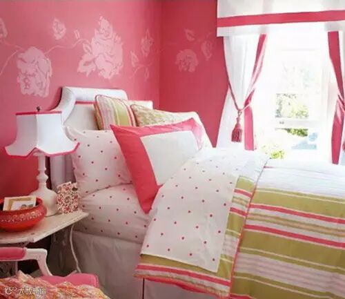 女生卧室装修效果图:如果想要花纹图案,记得一定要选择小花型,切忌使用艳丽的大花图案。