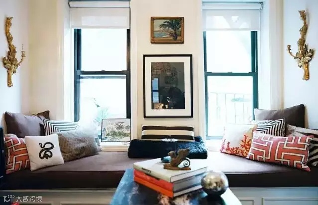 ◆将柔软的皮毛或者毛毯铺在飘窗上,搭配几个和房间风格统一的靠垫和抱枕,让这个局部小空间温暖加倍、自然舒适。