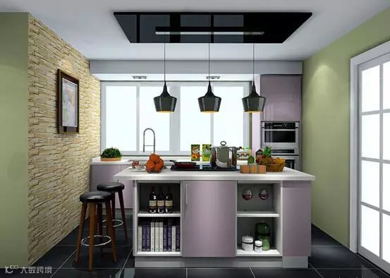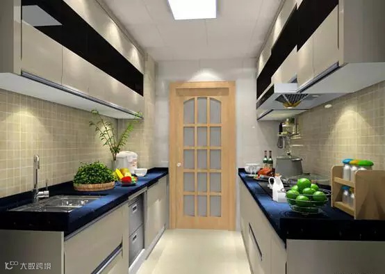 编辑点评:如果空间太小,不妨在两边墙面加上一些隔板柜,就可解决台面空间不足摆放餐具的问题。这款对称的厨房收纳设计,又为整洁加分。